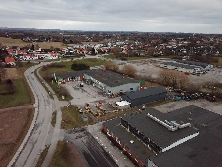 I handelsområdet intill Skurups västra infart ligger fastigheten som nu har vissa lediga lokaler. Annan verksamhet här är Landäng och Tipp Topp Bilvård.